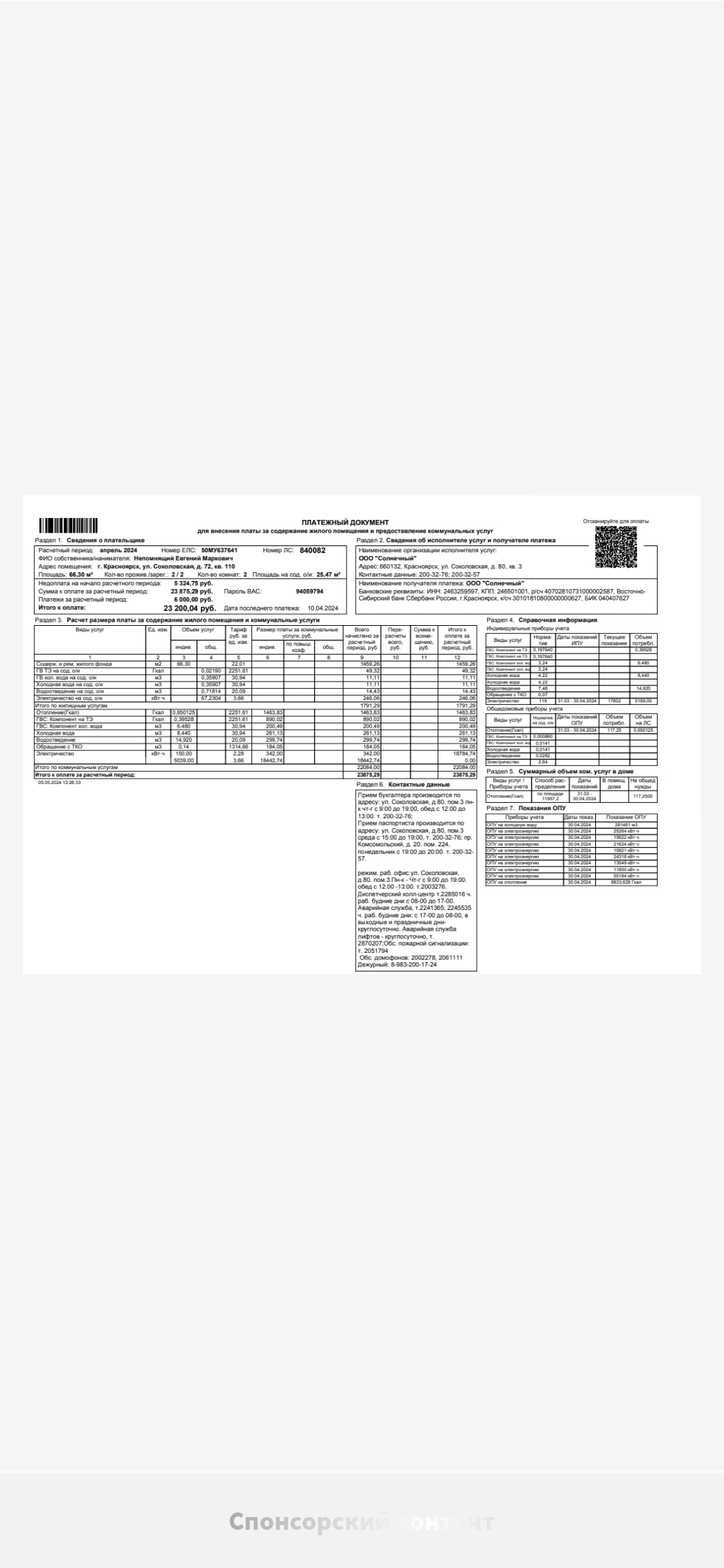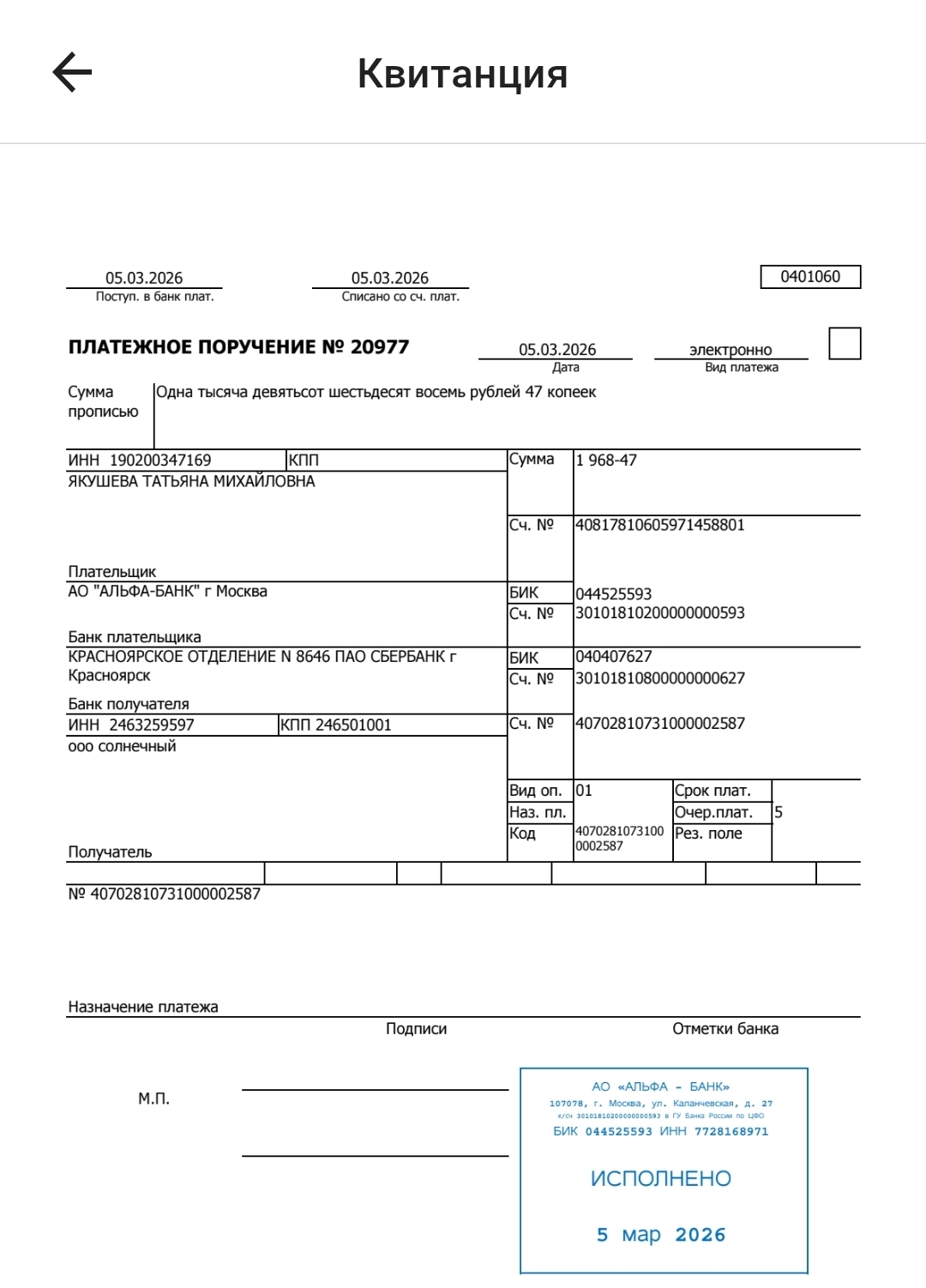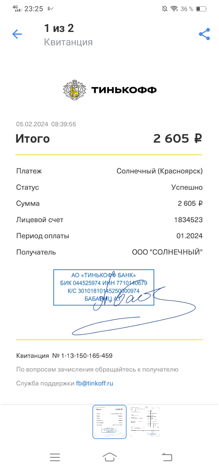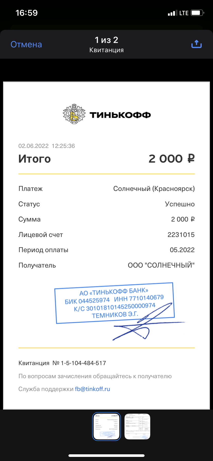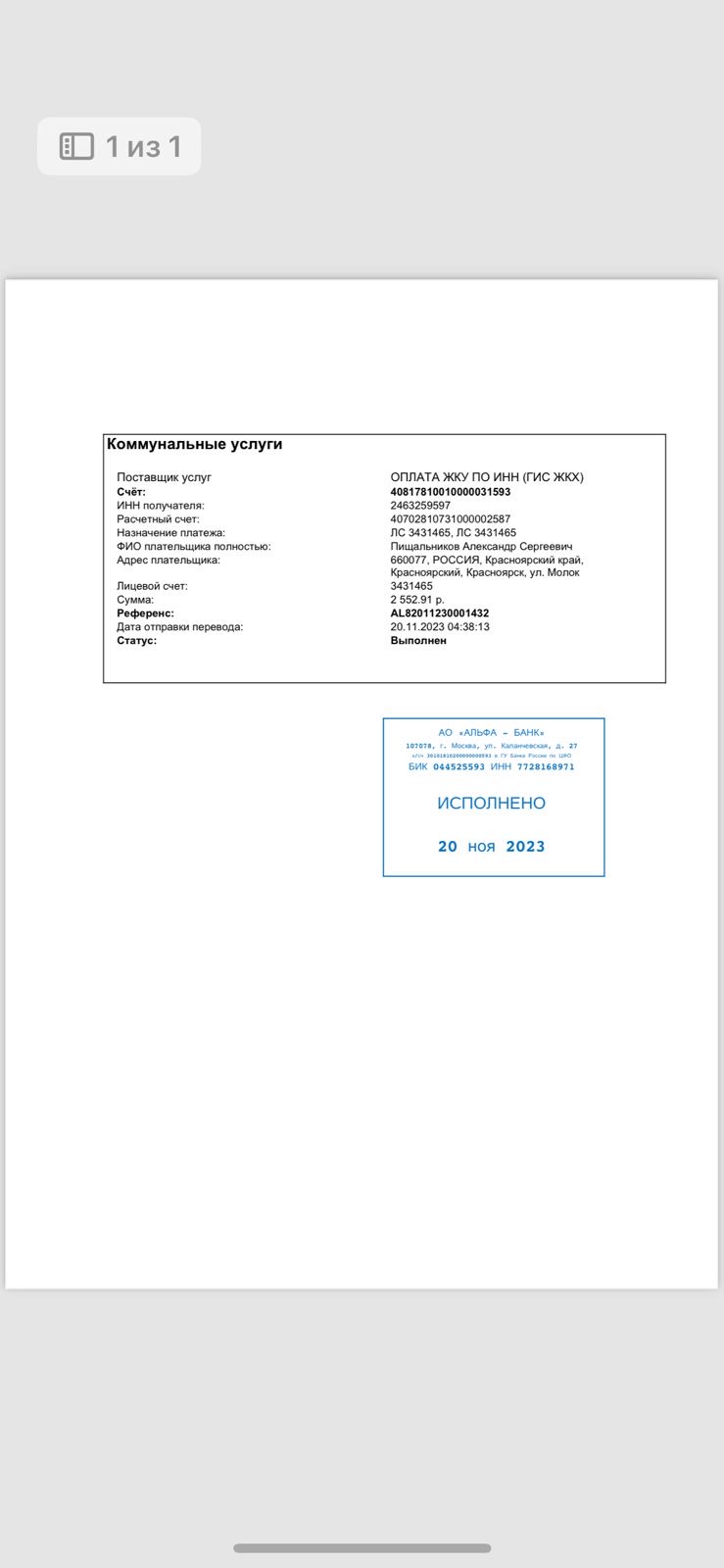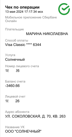 Обращение #1280: 23-03-2026(19:27) Шумяцкого 9, 119 Здравствуйте, прошу проверить зачисление оплаты согласно вложения. В ЛК не вижу оплату. | ||||||||
