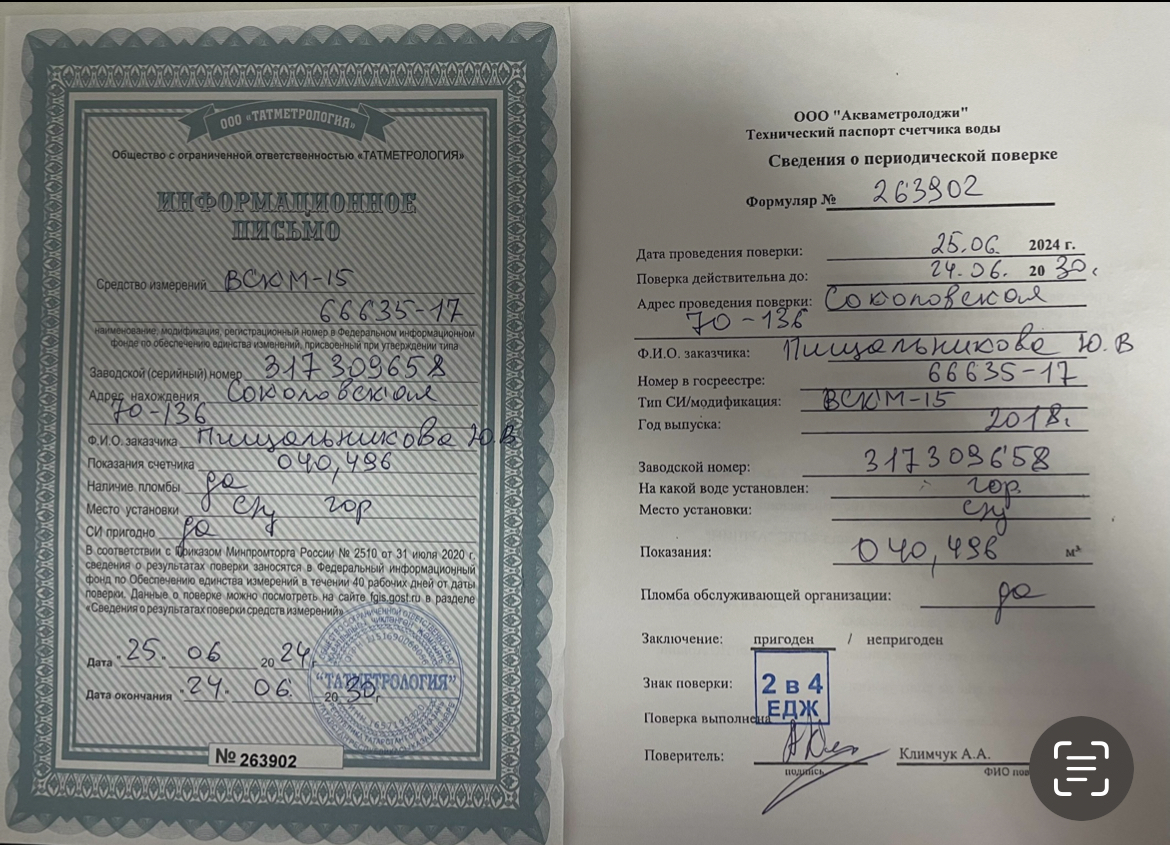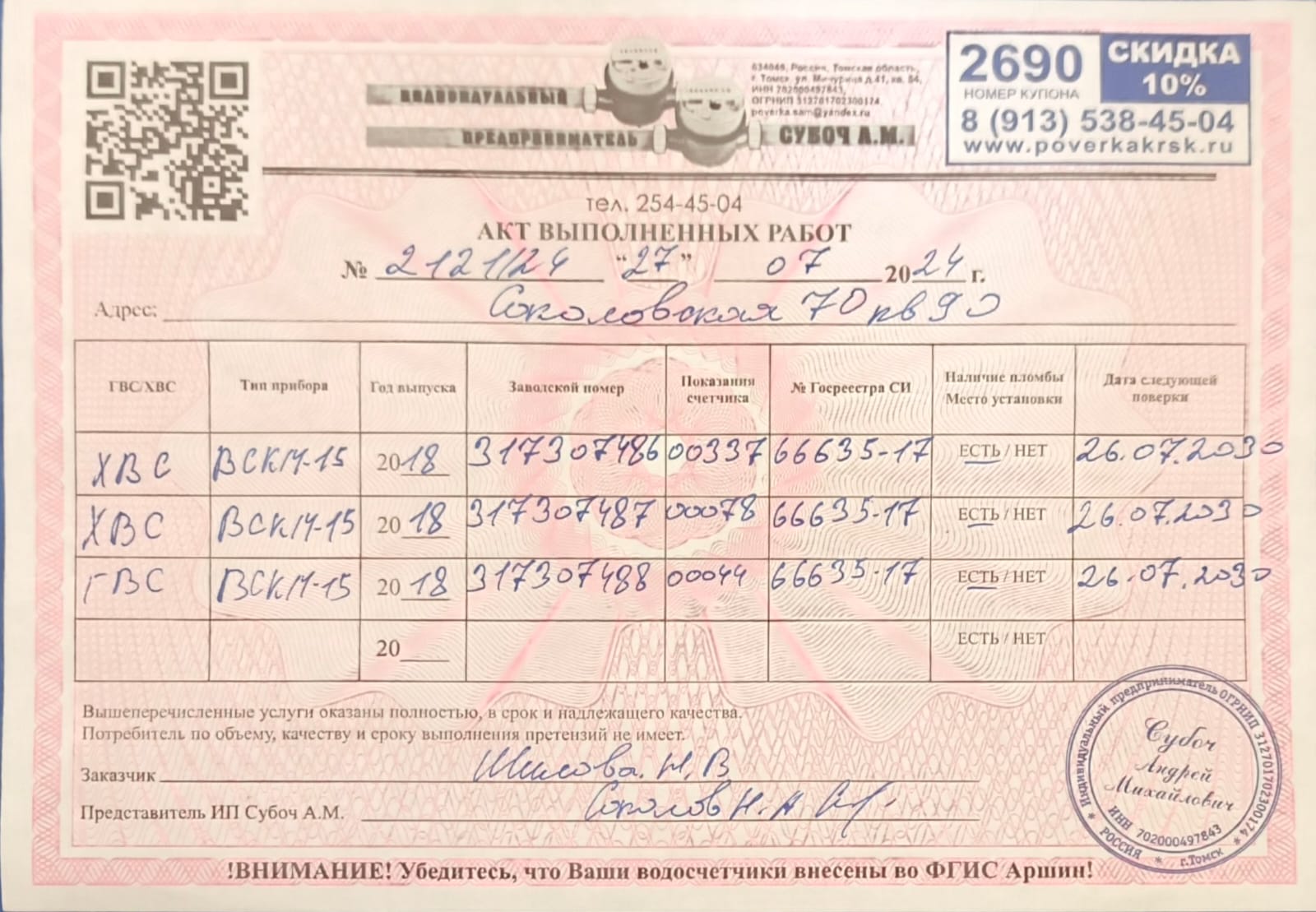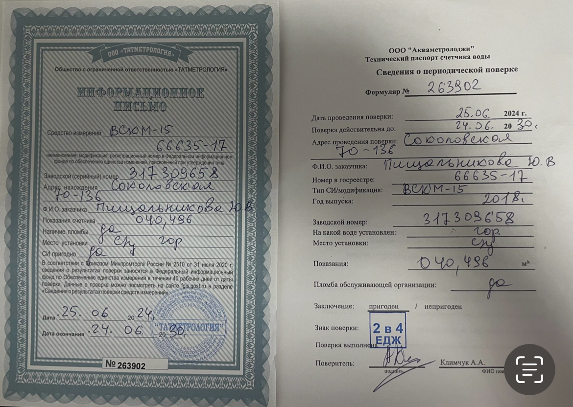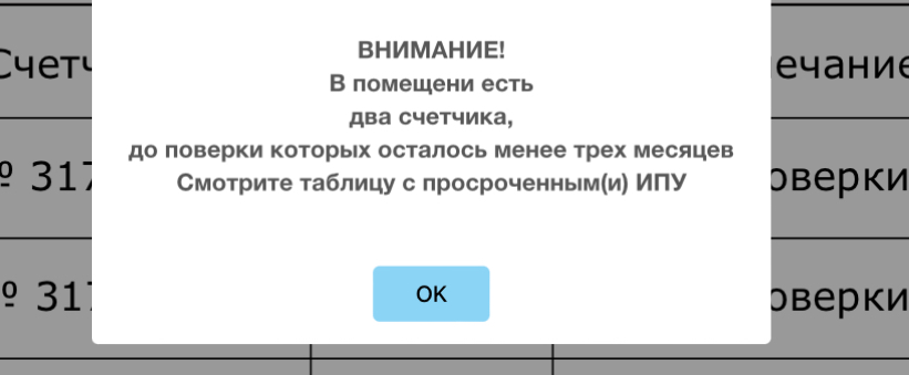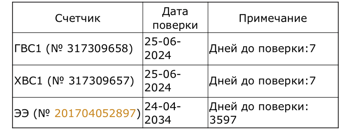 Обращение #25: 15-01-2019(17:39) Соколовская 72, 263 Добрый день. В пункте меню "Показания счетчиков" содержится сообщение: "В квартире есть счетчики (5), до поверки которых осталось менее трех месяцев!". Является ли это актуальной информацией? Если да, то каким образом провести поверку счетчиков? Заранее спасибо за ответ. | ||||||||