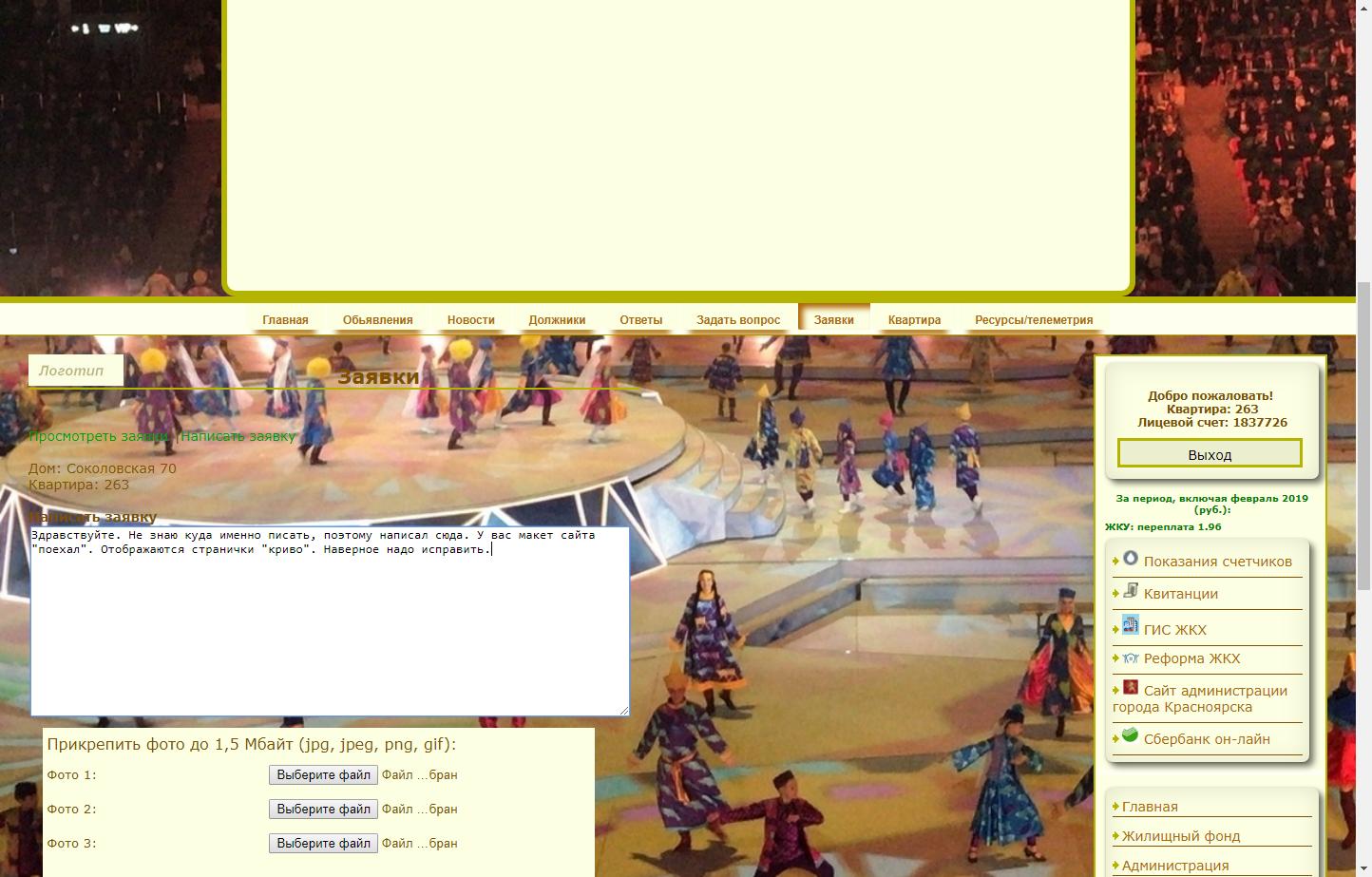 Обращение #51: 11-03-2019(08:54) Соколовская 70, 263 Здравствуйте. Не знаю куда именно писать, поэтому написал сюда. У вас макет сайта "поехал". Отображаются странички "криво". Наверное надо исправить. | ||||||||