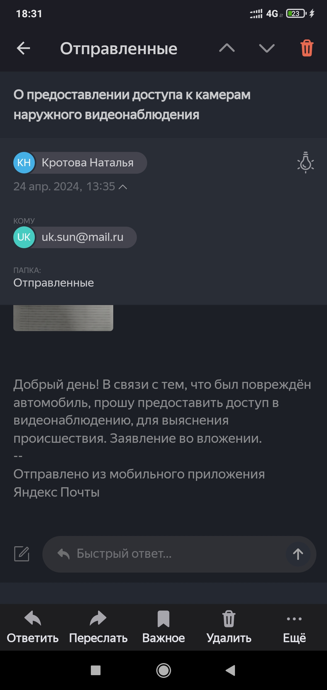| Ответ:01-12-2025(09:27)Выполнено Здравствуйте! Для получения доступа к видеонаблюдению собственнику необходимо обратиться лично в офис УК. | ||||||||