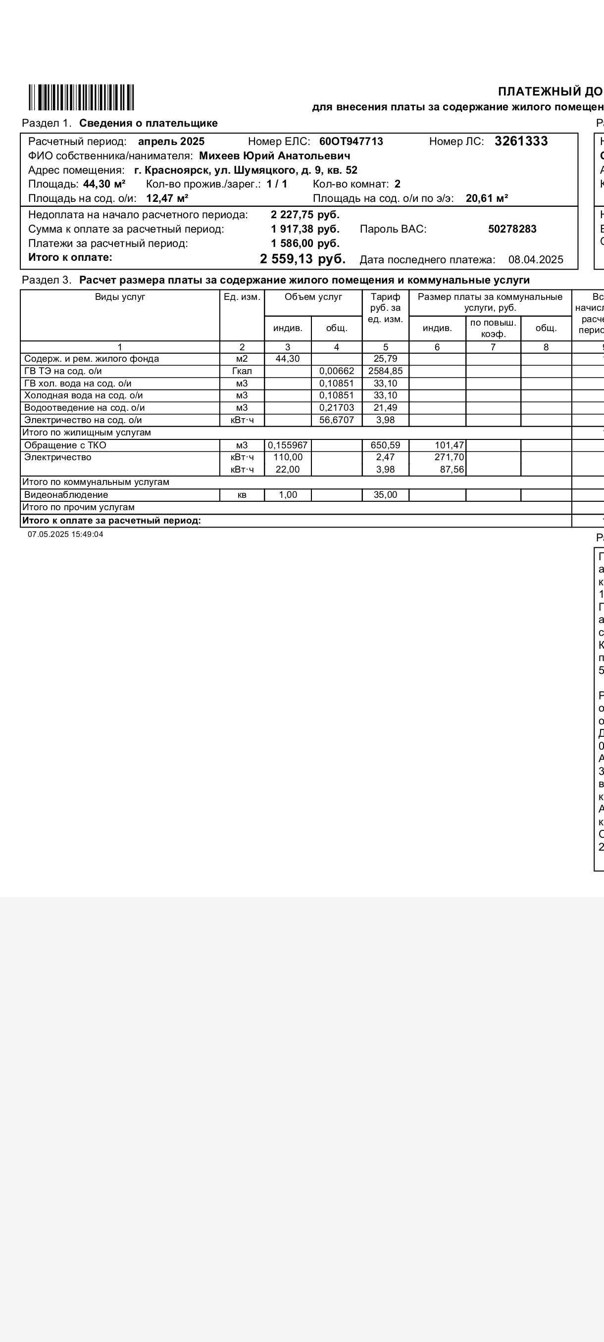 | Ответ:05-02-2019(10:36)Отвечено Добрый день. На момент этого расчетного периода по Вашему дому заключался договор. На сегодняшний день договор заключен и в следующей квитанции у Вас появится строка по оплате за электричество и все будет в одной квитанции. | ||||||||